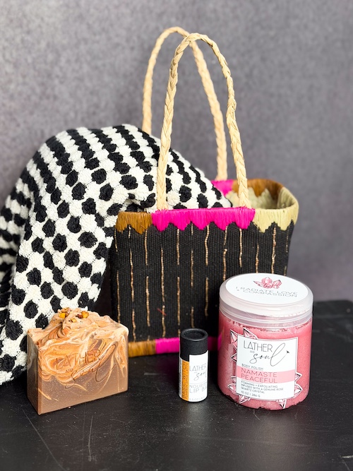 The answers on this are especially fun because of how they are constructed, the motivation drawn on in creating them. Emily: I start with a basket and let the colors in the basket dictate the direction of the pieces we add in. Lindsay: Again, I’m a big fan of gifting experiences rather than things, so when creating a gift basket I think about what kind of experience I want to give a person. I love to cook, so a cookbook, an apron, and some handwoven towels… Likewise, someone who is a visual artist might enjoy a journal, some watercolors, and a beautiful upcycled textile tote to carry it all…