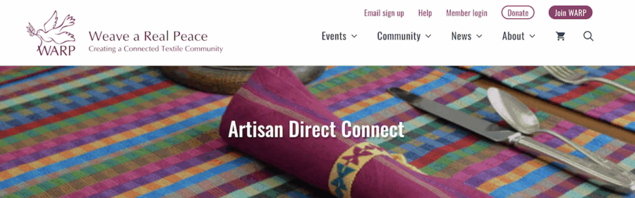 Recuerda que puedes comprar tus regalos navideños y para otras ocasiones directamente a los artesanos de todo el mundo a través del Artisan Direct Connect de WARP. Artisan Direct Connect de WARP es un directorio de recursos ofrecidos por nuestros miembros, donde podrás encontrar hermosos textiles tejidos a mano, cestas y otros artículos artesanales.